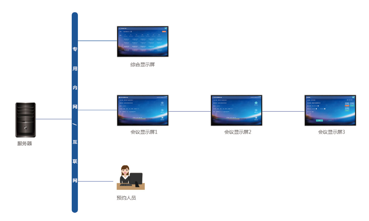 會議預定系統是以數游多媒體信息發布系統為基礎,為各類會議制作的一款專門軟件。會議會議預定發布系統可以通過平板電視、顯示器、LED顯示屏、一體機等終端以多媒體的方式即時發布會議信息。可與客戶的OA系統,門禁系統等對接實現會議室資源的有限管理和調度