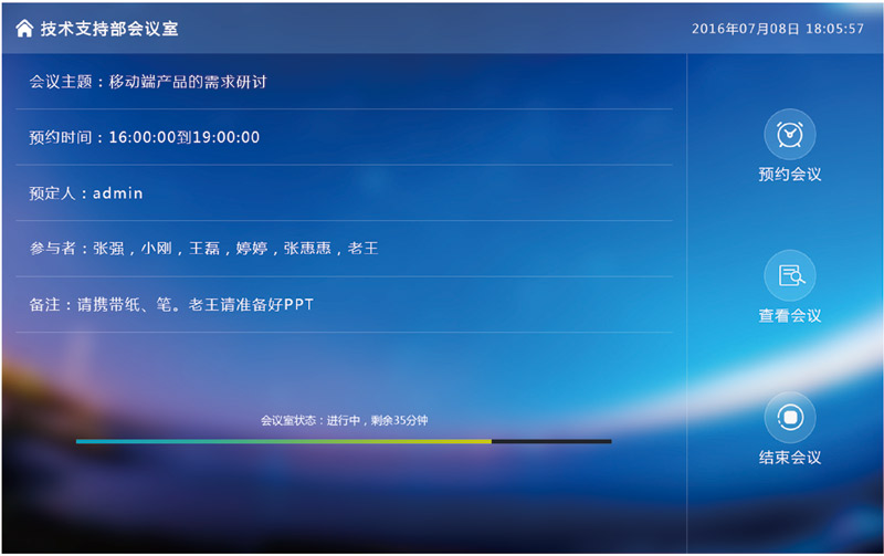 2:管理人員可以通過觸摸屏前端方便,便捷預約會議室