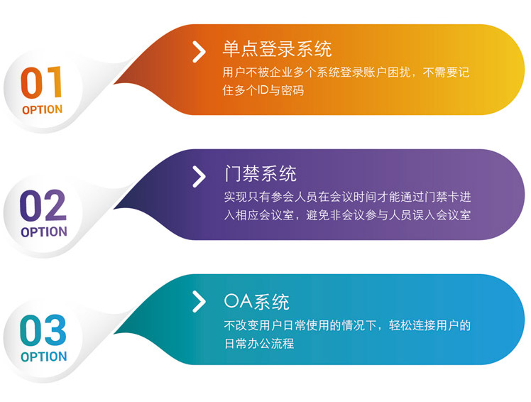 2:門禁系統,實現只有參會人員在會議時間才能通過門禁卡進入相應會議室,避免非會議參與人員誤入會議室中