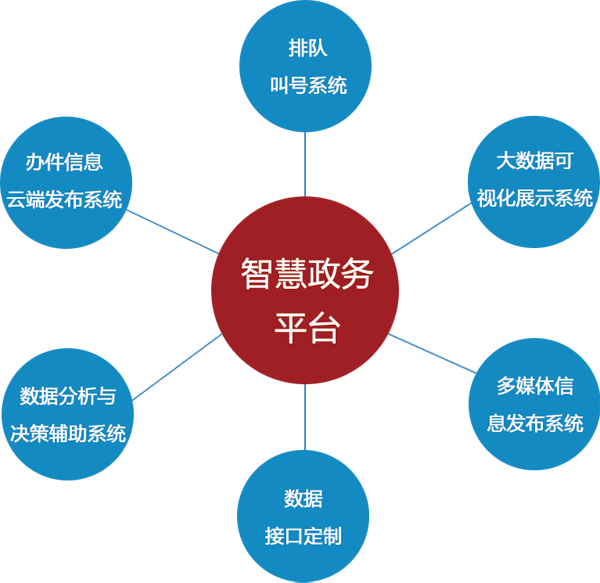 慧能科技依據(jù)自身豐富的政務服務行業(yè)經(jīng)驗和研發(fā)創(chuàng)新能力,貼合群眾需求,整合資源研發(fā)了“智慧政務平臺”。該平臺集成了排隊叫號、服務評價、信息交互與發(fā)布、移動互聯(lián)網(wǎng)應用、大數(shù)據(jù)可視化展示、大數(shù)據(jù)分析與決策輔助等功能模塊。平臺軟件采用B/S 架構(gòu)設計,方便安裝、使用與維護。通過與互聯(lián)網(wǎng)、移動互聯(lián)網(wǎng)技術的結(jié)合、與“政務業(yè)務系統(tǒng)”、“電子政務平臺系統(tǒng)”、“OA系統(tǒng)”等業(yè)務系統(tǒng)的數(shù)據(jù)對接,可以為辦事的人民群眾提供準確、及時、有效的信息,改善辦事秩序,方便人民群眾辦事,提高人民群眾對政府辦事機構(gòu)的滿意度。